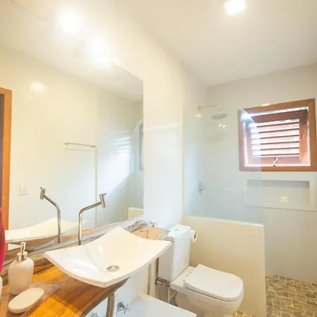 Strijkfaciliteiten en airconditioning, samen met een bank, zijn aanwezig voor een comfortabel verblijf. Deze gesitueerde in Praia de Pipa Casa Das Oliveiras Pipa Villa beschikt over een badkamer met een apart toilet en een douche. Er zijn toiletartikelen voor gasten en badlakens voor het comfort van de gasten.